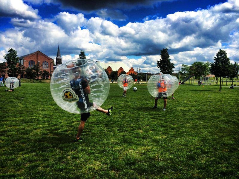 Onze klassiekerVoetballen in een opblaasbare bubbel — gegarandeerd hilarisch.